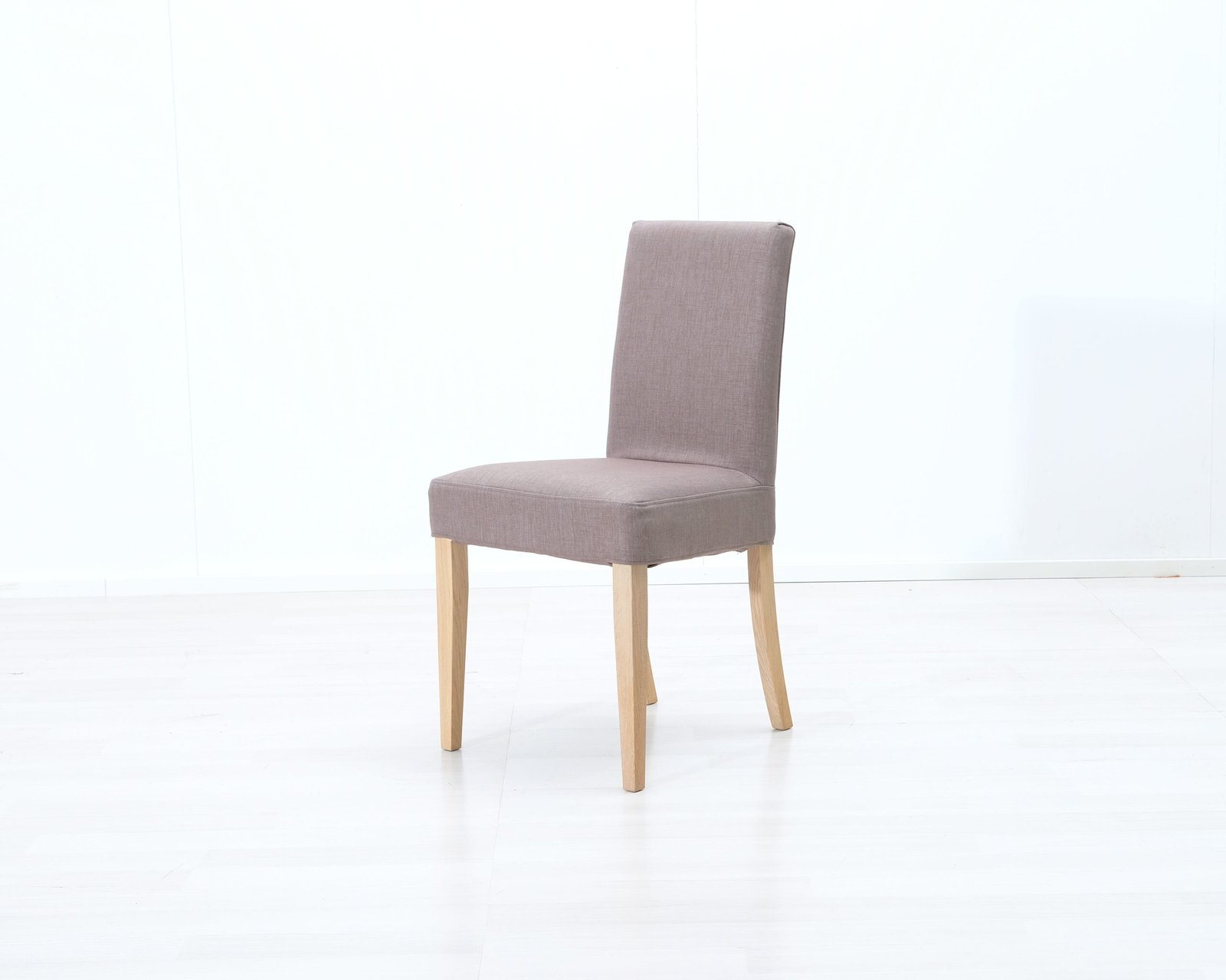 Norjalaisen ygg&lyng-merkin valmistama Varg-ruokatuoli. Tuolin istuin on verhoiltu harmaalla kankaalla ja jalat ovat valmistettu tammesta. Suunnittelijana Elin Louise Sveen. Ei huomattavaa kulumista.
