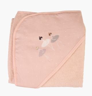 Pehmeä ja kaunis huppupyyhe ihanasta puuvillafroteesta. Huppu, jossa balettitanssijoiden kuvio.