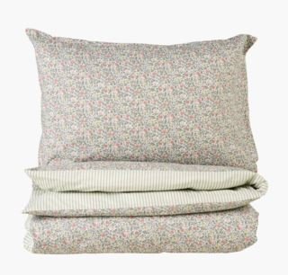 Ellie-pussilakanasetti on valmistettu 100 % puuvillasta, ja etupuolella on pienikukkainen kuosi ja takapuolella pilkullinen kuosi. Vuodevaatteet ovat saatavana eri väreissä ja koossa. Lankatiheys 144.