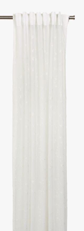 Verho, jossa samansävyinen brooderattu kukkakuvio. Läpikuultava verho polyesteristä, joka kehystää ikkunan ja luo kodikkaan tunnelman sulkematta valoa huoneen ulkopuolelle. Verho on yhdistelmänauhaverho ja sen voi ripustaa kolmella eri tavalla: sormikoukuilla, rypytysnauhakoukuilla tai piilolenkeistä suoraan verhotankoon. Pakkauksessa 1 verho.