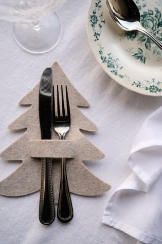 Kaunis kuusen muotoinen aterinpidike, huopaa. 4-pack.