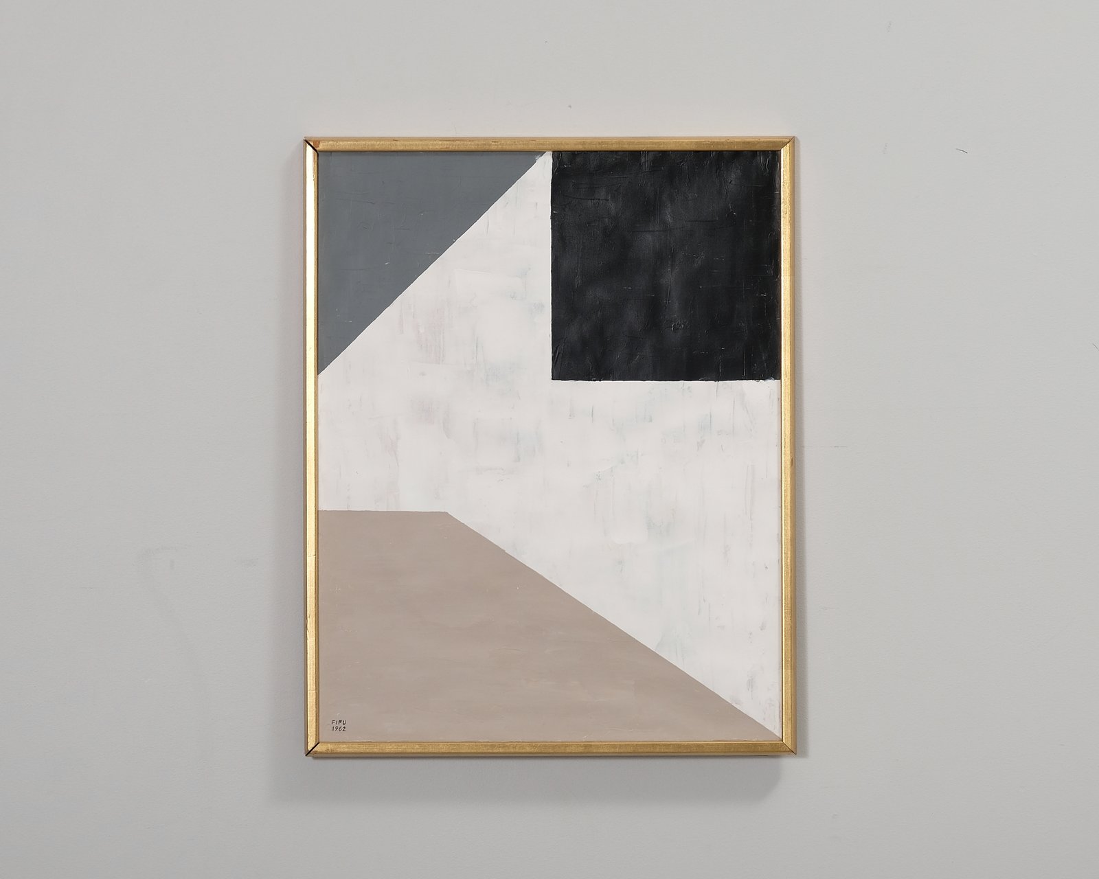 FIFU1962 on kuratoitu kokoelma abstrakteja taideteoksia, joiden taustalla on New Yorkista ja Helsingistä käsin toimiva taiteilija Fiona Spear. Spear hyödyntää töissään vanhoja teoksia, joiden päälle hän luo uusia kompositioita antaen näille uuden elämän. Vanhat kehykset luovat modernismia huokuvan abstraktin ilmaisun rinnalle kauniin kontrastin muodostaen teoksista mielenkiintoisia ja harmonisia kokonaisuuksia. Ilmaisuvoimaiset ja geometriset kompositiot antavat sisustukseen persoonallista tuntumaa ja teosten neutraalit sävyt asettuvat helposti sisustuksen erilaisten väripalettien ja materiaalien rinnalle. Teos on uusi. Luotu kierrätysmateriaaleista.