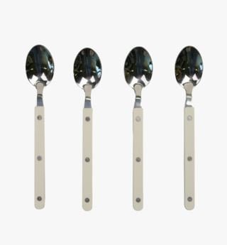 4 teelusikkaa ruostumatonta terästä muovikahvalla.