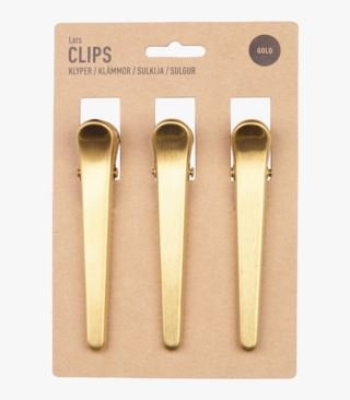 Pitkät kullanväriset metalliset paperiliittimet. 3-pack.