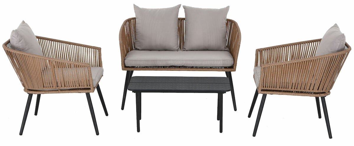 Punos sohvaryhmä koostuu upeista nojatuoleista, kahden istuttavasta sohvasta sekä sohvapöydästä. Punos sopii hyvin myös ravintolan terasseille kotien lisäksi. Sohvaryhmällä saat helposti lisättyä mukavuutta parvekkeelle tai terassille. Punos sohvaryhmä on helppo kasata ja se on valmistettu ulkokäyttöön sopivista materiaaleista. Pehmusteet tulee ... Lue lisää