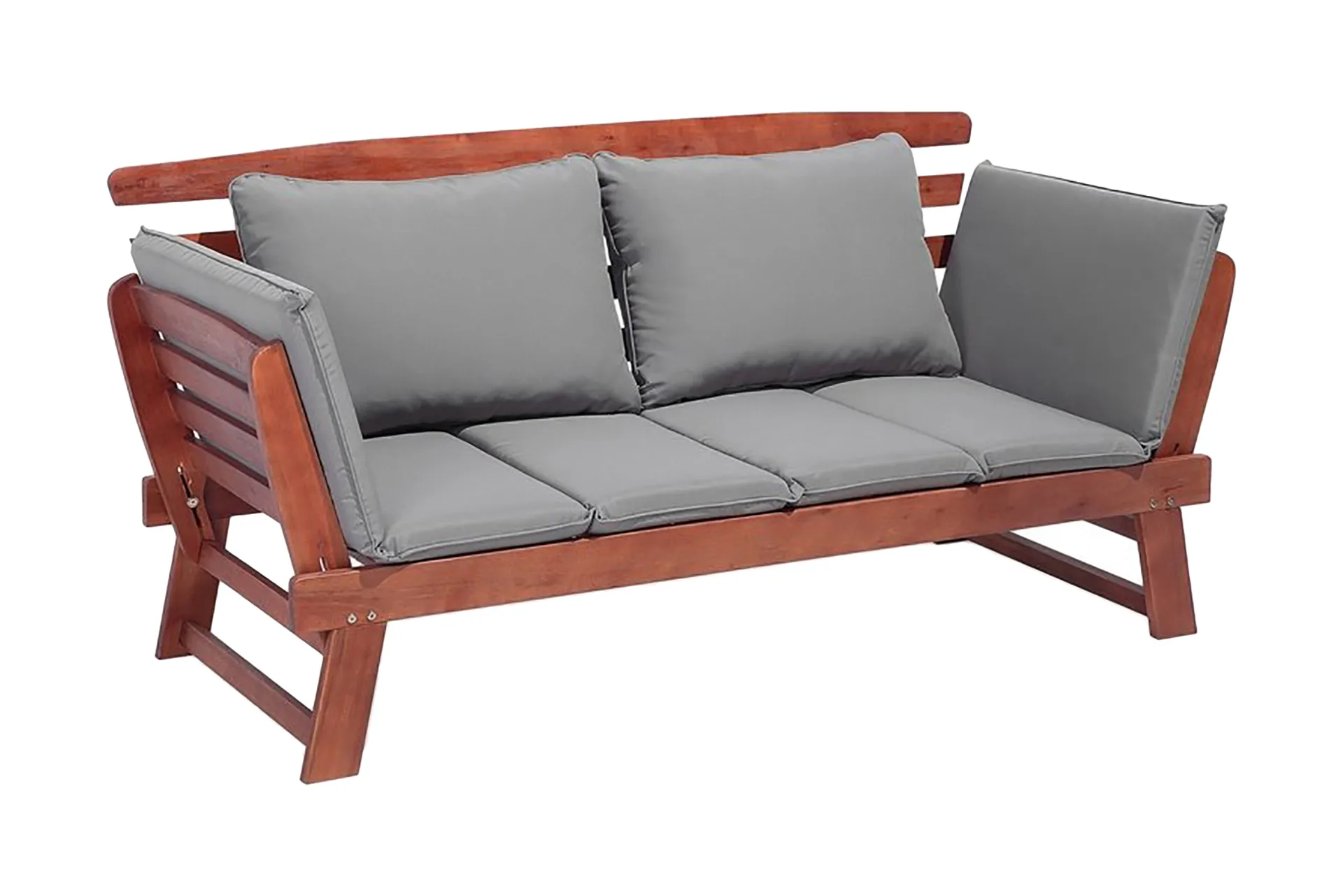 Puutarhan puupenkki säädettävillä käsinojilla. Tämä viihtyisä 2-istuttava puutarhapenkki tuo ulkotilaan retrotyyliä. Sen runko on valmistettu kestävästä ja laadukkaasta luonnollisesta eukalyptuspuusta, joka sopii täydellisesti sekä moderneihin että perinteisiin sisustuksiin. Käsinojat ovat säädettävissä, minkä ansiosta penkki on helppo muuttaa mukavaksi loikoilupaikaksi, jossa ... Lue lisää
