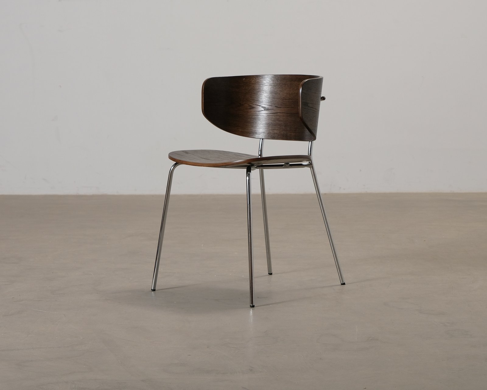 Sofacompanyn Jordan on arkkitehtoninen ja veistoksellinen ruokapöydäntuoli, jonka suuri ja kaareva selkänoja takaa hyvän istuinmukavuuden ja ohuet metallijalat viimeistelevät tuolin ilmavan silutetin.