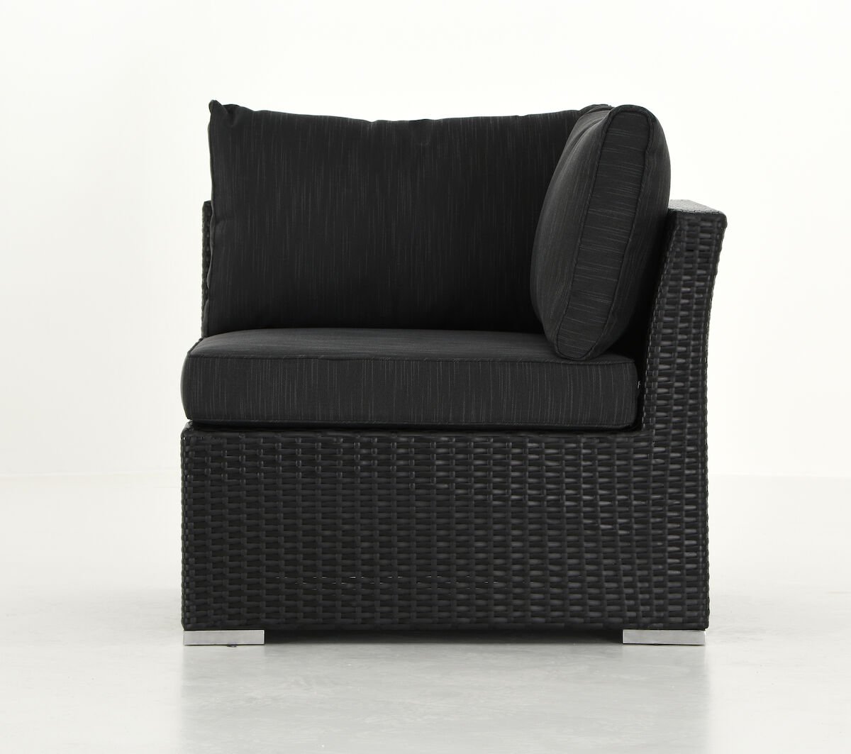 Vanamo moduulisohva -sarjaan kuuluva tyylikäs kulmaosapala. Osta lisäksi haluamasi osat ja saat juuri sinulle sopivan ja mieleisen ryhmän pihallesi. Selkätyynyn korkeus 35 cm. Paketin mukana tulee kiinnikkeet, joilla osan saa kiinnitettyä mahdollisiin muihin osiin.