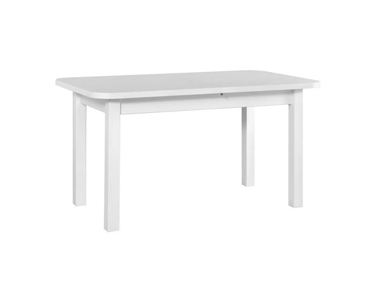 Ajaton, kestävä ja helppohoitoinen 140 x 80 cm ruokapöytä valkoisena. Materiaalit: ABS ja laminaatti. Pöydän pohjaan ja reunaan on tullut kuljetuksen aikana muutamia kolhuja.